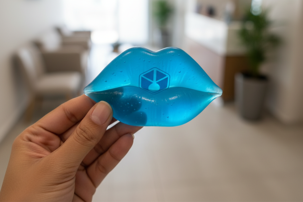 Formato diferenciado que combina com estética, harmonização e procedimentos faciais. Eleva a experiência do pós-atendimento e dá um toque premium ao brinde entregue ao paciente. Perfeita para personalização com identidade visual elegante e impacto imediato.